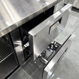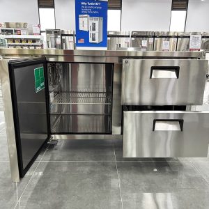 Turbo Air KUR15-2D-2 là dòng bàn mát công nghiệp chất lượng cao, chuyên dùng trong lĩnh vực bảo quản và trưng bày thực phẩm. Với thiết kế hiện đại, vận hành ổn định và khả năng làm lạnh tối ưu, đây là thiết bị lý tưởng cho mọi không gian bếp chuyên nghiệp từ nhà hàng, khách sạn đến bếp bánh.