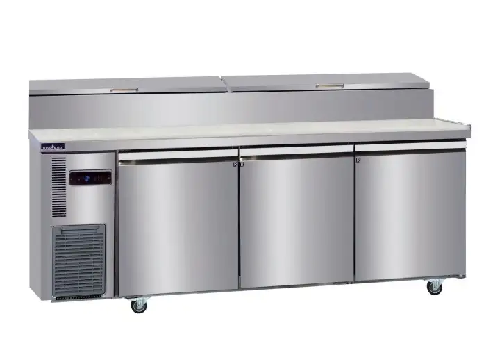 - ❄️ Bàn pizza sử dụng công nghệ làm lạnh bằng không khí (quạt gió), giúp khí lạnh được phân phối đều khắp khoang lưu trữ và khu vực khay topping.