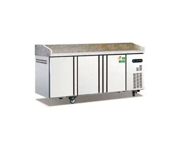 Bàn pizza không chỉ là nơi để bạn thao tác sơ chế nguyên liệu, trộn nhân hay chuẩn bị topping. Nó còn đóng vai trò như một kho mát mini ngay trong khu chế biến, giúp bạn: