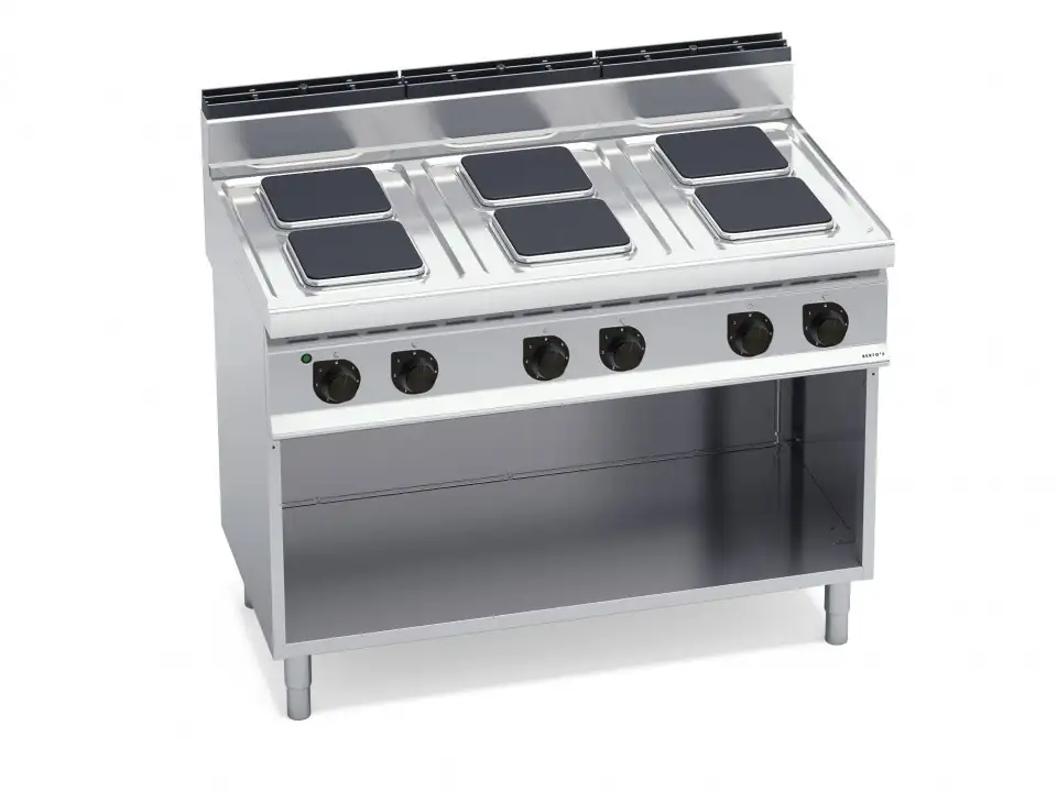 BẾP ĐIỆN 6 VÙNG NẤU VUÔNG CÓ TỦ DƯỚI BERTO’S E7PQ6M – HIỆU SUẤT CAO, THIẾT KẾ CHUẨN CHÂU ÂU CHO BẾP CÔNG NGHIỆP HIỆN ĐẠI