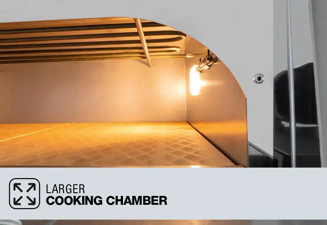 - 🍕 Nướng 6 + 6 chiếc pizza Ø 35 cm cùng lúc – lý tưởng cho nhà hàng và quán pizza bận rộn.