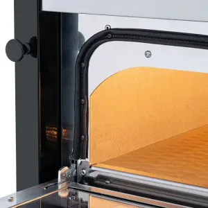 Đèn chiếu sáng bên trong giúp quan sát rõ từng công đoạn nướng, đồng thời tạo cảm giác ấm áp, chuyên nghiệp khi thao tác.