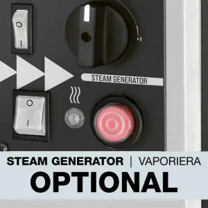 - Có thể lắp thêm máy phát điện hơi nước theo yêu cầu, giúp bánh pizza và các loại bánh khác mềm mịn bên trong nhưng vẫn giòn bên ngoài.
