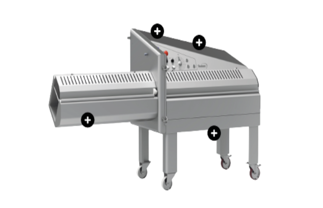 Thiết kế đạt chuẩn vệ sinh công nghiệp, có thể làm sạch bằng vòi xịt áp lực mạnh, giúp tiết kiệm thời gian, giảm thiểu nguy cơ nhiễm khuẩn.