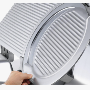 Lưỡi cắt của máy có đường kính 350mm, được làm bằng thép không gỉ, giúp cắt thịt một cách dễ dàng và chính xác.