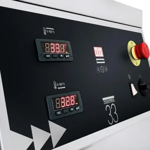 Một trong những điểm đột phá của Prismafood PIZZA PRESS 45 là hệ thống gia nhiệt hai chiều thông minh, giúp tấm ép luôn duy trì nhiệt độ ổn định từ 0–160°C.