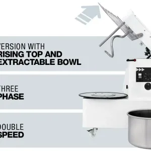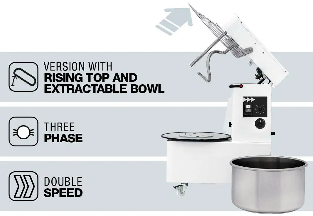 - ⚡ Động cơ ba pha hai tốc độ: cho phép lựa chọn giữa trộn chậm (mixing) và trộn nhanh (kneading).