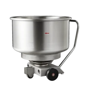Máy trộn ngoài bồn được thiết kế với hệ thống cố định xe đẩy loại phanh có khả năng bù lực khi bồn trộn di chuyển ngang, giúp xe đẩy được cố định chắc chắn và cải thiện độ ổn định trong quá trình trộn. - ⚙️ HỆ THỐNG XI LANH THỦY LỰC KÉP BỀN BỈ