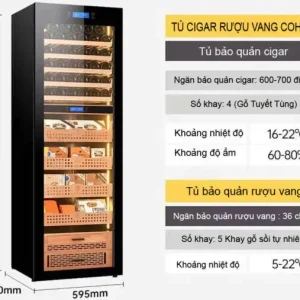 - Độ ẩm: 60–80% – nhờ hệ thống cân bằng ẩm tự động, giúp cigar không bị khô hoặc nấm mốc