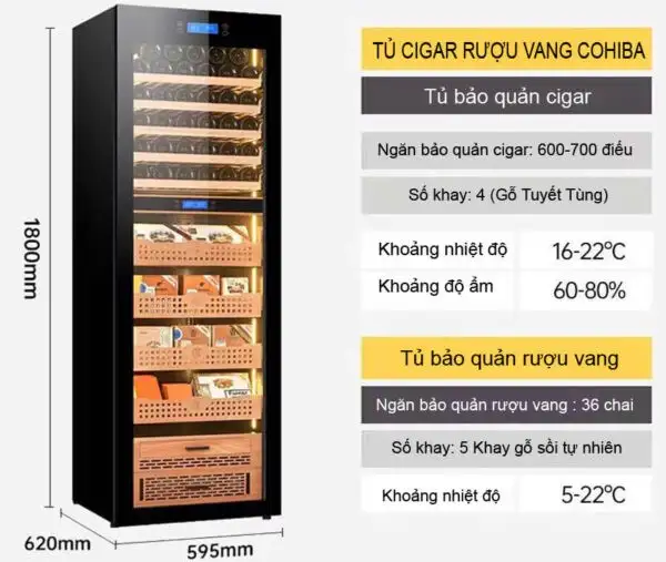 🔹 Ngăn cigar: Dung chứa 600–700 điếu