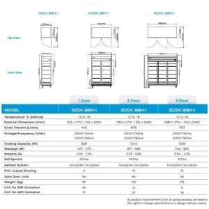 - Dung tích 400L phù hợp cho mô hình trưng bày và bán thực phẩm vừa và nhỏ.