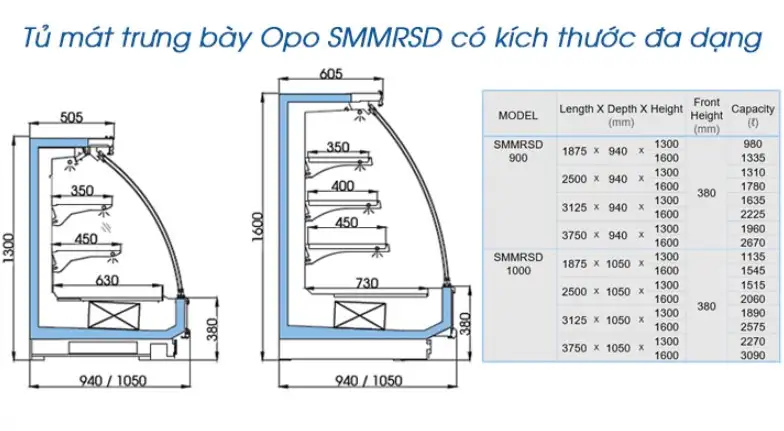 TỦ MÁT TRƯNG BÀY THỰC PHẨM OPO SMMRSD