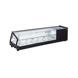 Với đèn LED chiếu sáng ở phần trên của tủ, tủ trưng bày này giúp làm nổi bật món ăn, tạo điểm nhấn ấn tượng cho không gian của bạn.